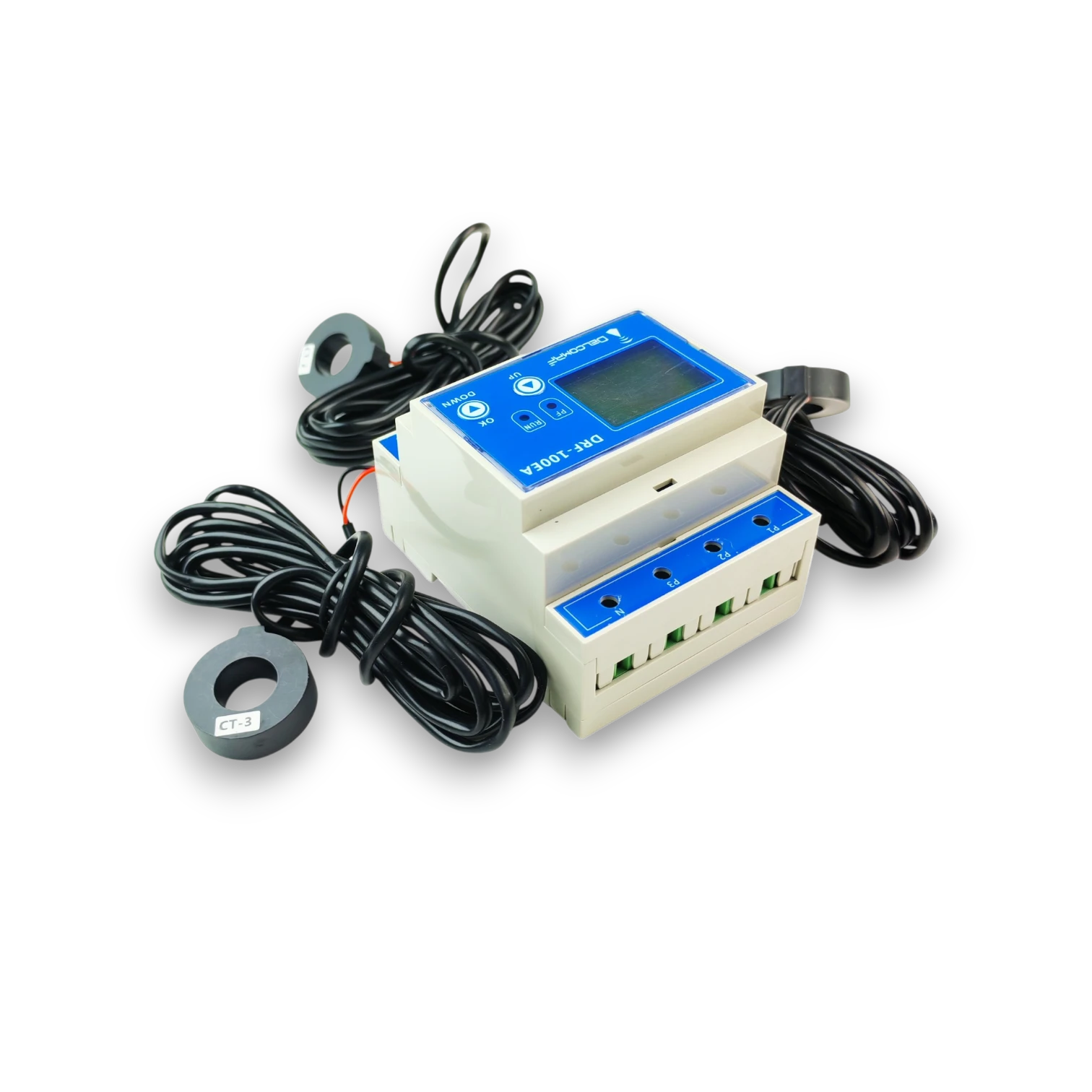 80-260V AC arası voltaj ölçümü ve faz başı 80A akım ölçümü sunar; klipsli trafo kullanımı ile 100A’a kadar ölçüm yapılabilir. RS485 haberleşme portu üzerinden veri iletebilir ve -10°C ile +75°C aralığında endüstriyel çalışma koşullarına uygundur. LVD + CE sertifikalıdır.