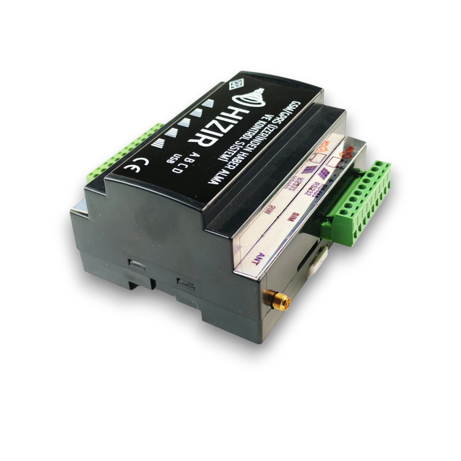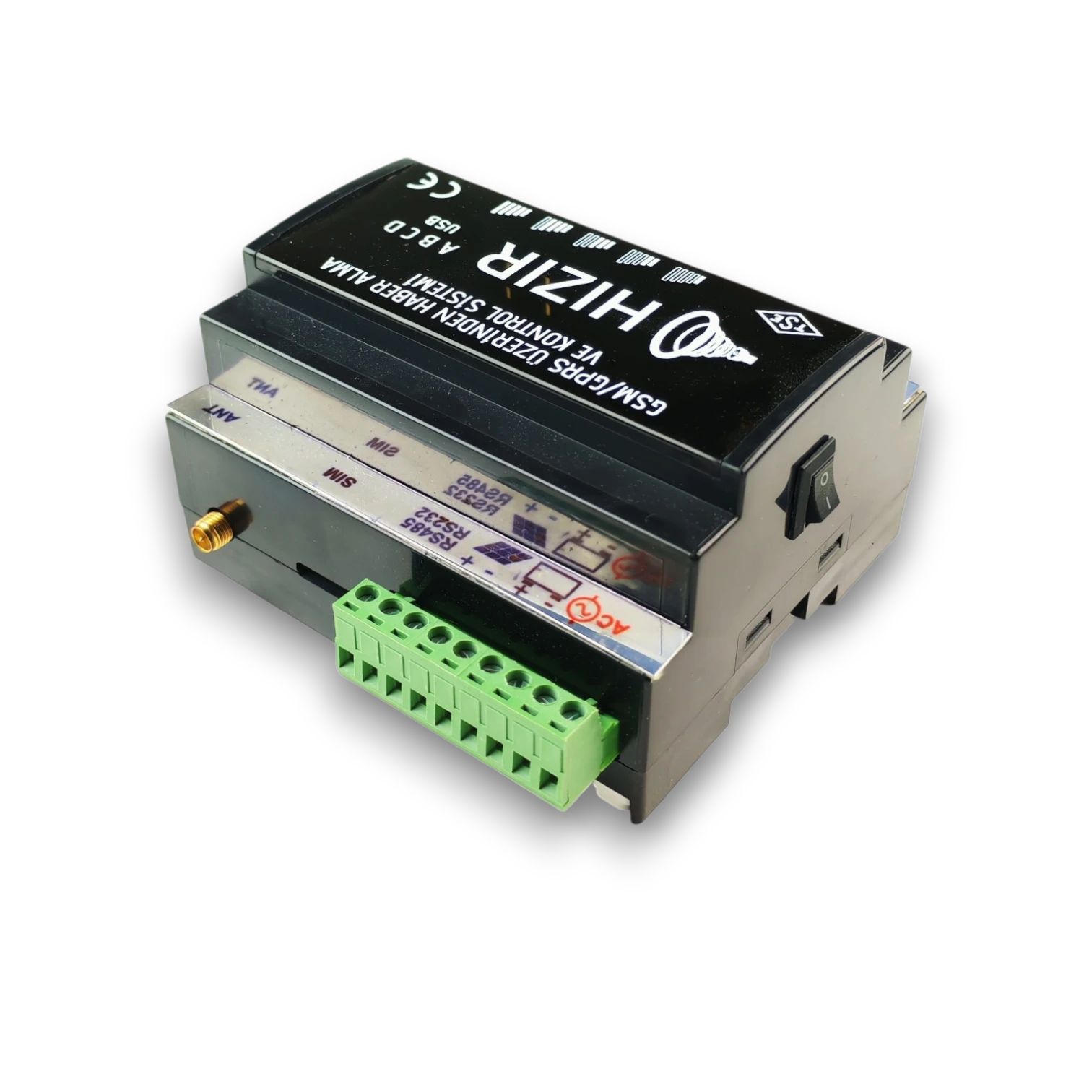 Sesli ya da SMS ile Haber Alma ve Kontrol cihazı, endüstriyel sistemlerin dijital girişlerinden gelen verileri telefon araması veya SMS ile bildirir. Her kanal için ayrı bilgilendirme yapılabilir ve role kontrolü SMS üzerinden sağlanabilir. Toplamda 5 IO kanalı sunar; standart olarak 3 dijital giriş ve 2 role çıkışı içerir.